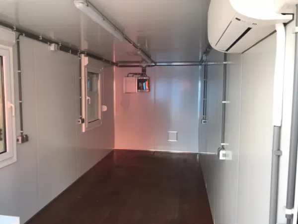 Fully insulated with 50mm Rockwool panels and equipped with integrated 230V electrical systems, heating, lighting, and natural ventilation, this unit supports long-term occupation or mission-critical deployment across a variety of industries including construction, maritime, and event logistics.